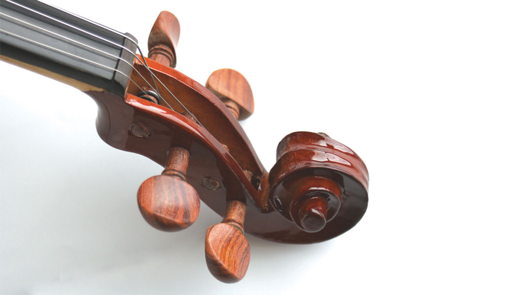 The Primavera violin outfit features a hand carved maple and spruce violin with inlaid purfling and is fitted with rosewood pegs, rosewood chinrest, ebony topnut and ebonised hardwood fingerboard. The tailpiece is a composite material with integral adjusters. The bow is a hardwood bow with ebony frog. The outfit is completed with a blue Styrofoam shaped case.